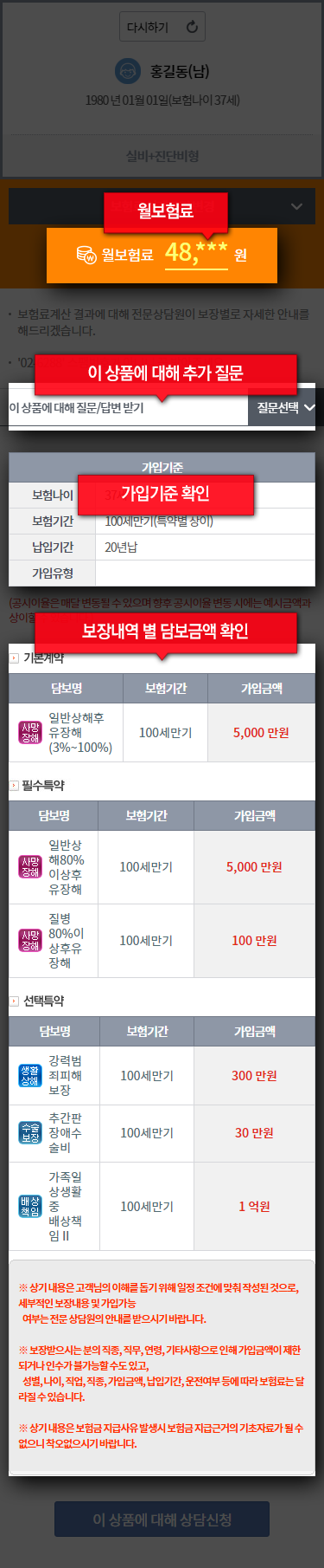 | 가입유형 | 1종(일반형) / 90세만기 / 20년납 / 상해 1급 / 월납 | |||||||||